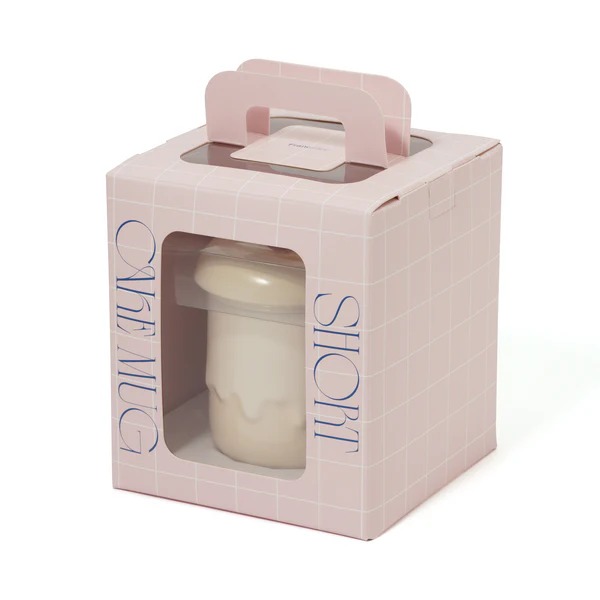 サイズはホワイトが約幅8.0×奥行11.0×高さ13.1センチ、ブラウンが約幅8.0×奥行11.0×高さ13.7センチで、容量はいずれも270ミリリットル。素材はストーンウエア、重さは約440グラムで安定感があり、電子レンジや食器洗い乾燥機でも使用可能という扱いやすい仕様です。価格は各1800円(税込)。本物のケーキが入っていそうな専用ボックスに入っているので、ギフトにもぴったりのアイテムです。