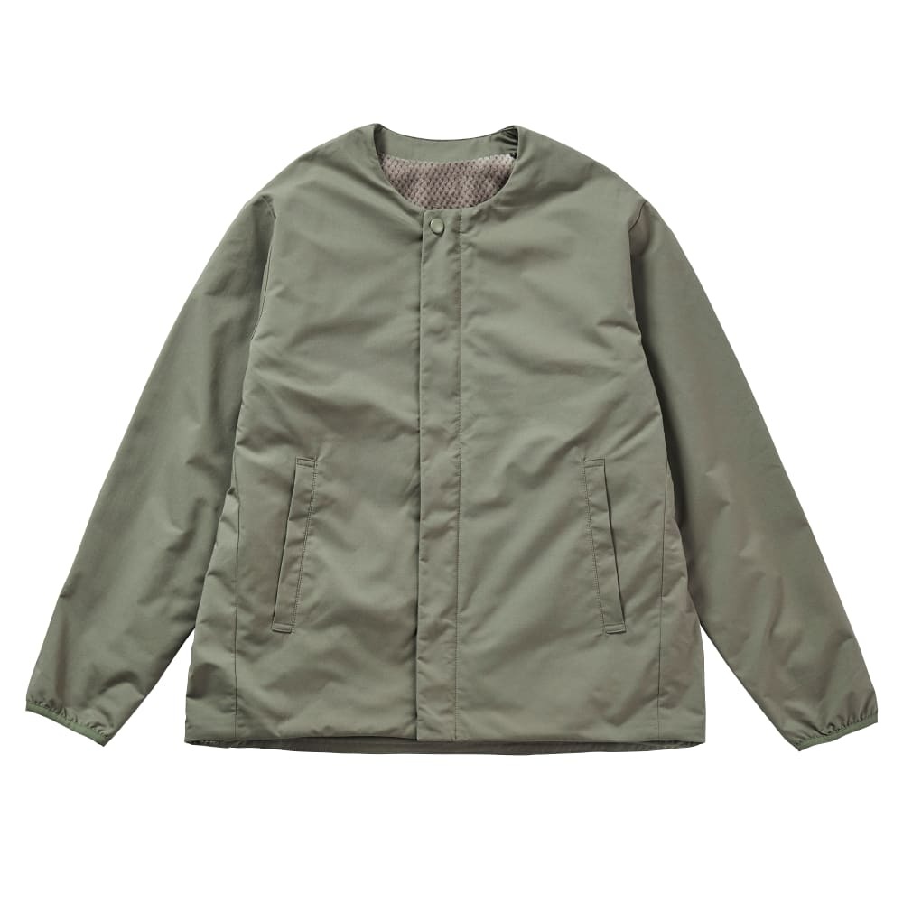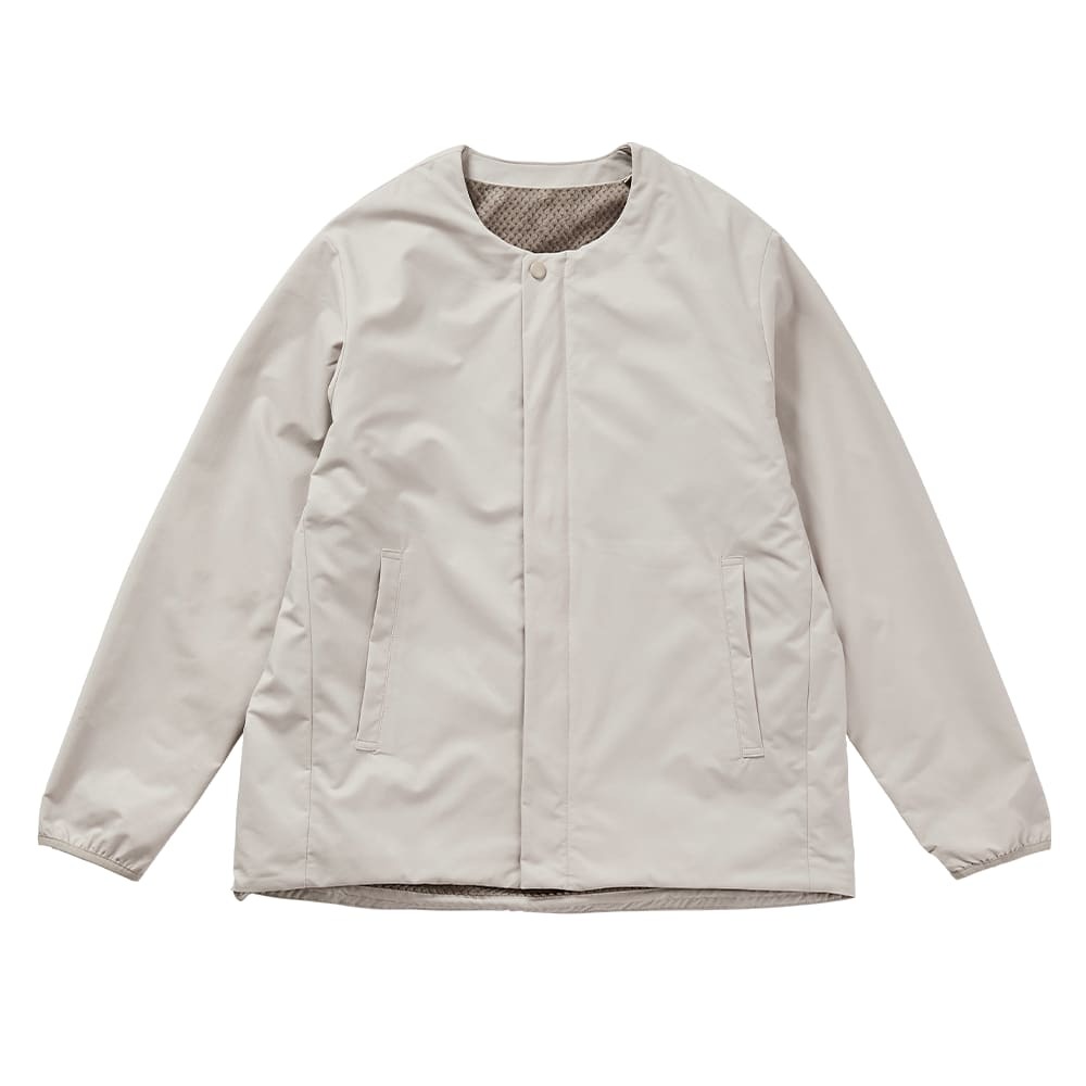 ノーカラーでミニマルなデザインなので、スウェットやタートルネック、ワンピースの上からも重ねやすく、秋は1枚で、真冬はコートのインナーとして“シーンレス”に活躍します。価格は税込2,500円、カラーはカーキ、ブラック、グレージュ、オフホワイトの4色展開で、両サイドと内側に複数のポケットを備え、スマホや財布などを手ぶらで持ち運びやすい点も魅力です。
