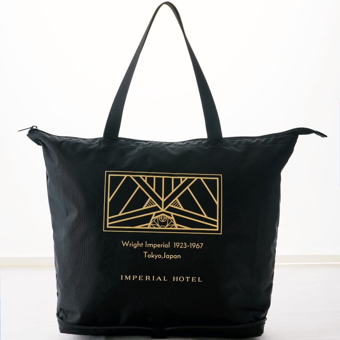 ブラック地にゴールドでステンドグラスモチーフとロゴがプリントされたバッグは、高級感たっぷりで「帝国ホテルらしい」デザインといえそうです。会員価格3168円(税込)、通常価格3520円(税込)で販売されています。
