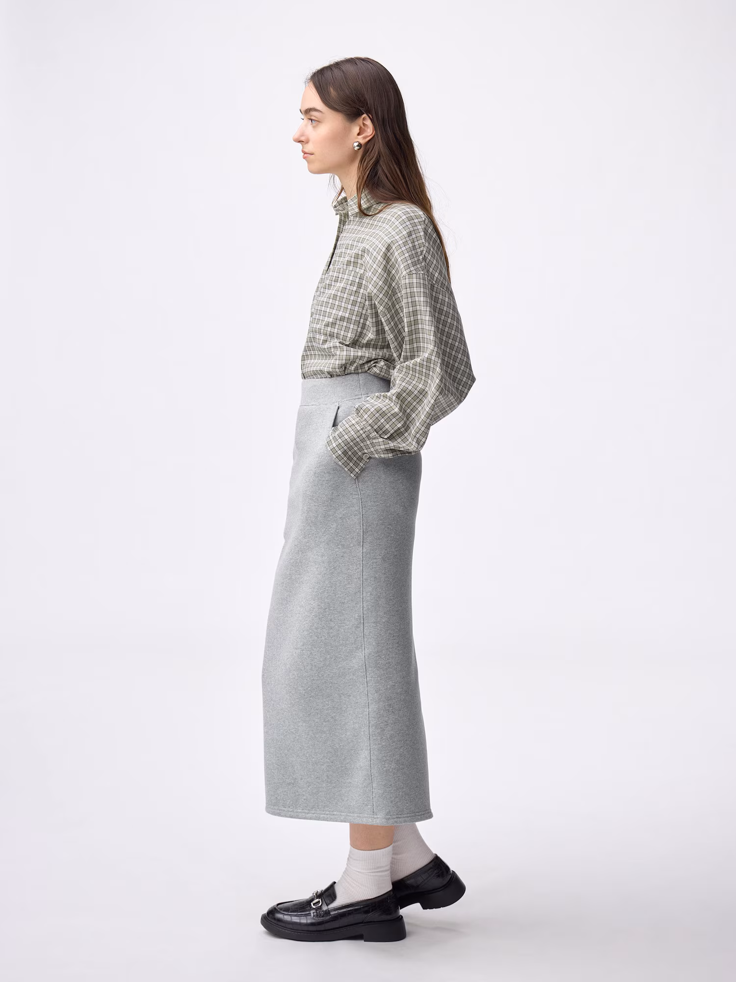 GUの「ヘビーウェイトスウェットナロースカート(丈標準82.5~89.5cm)」は、肉厚感があり肌触りの良い裏起毛のスウェット素材を使用したスカート。ウエストゴム仕様で着脱しやすく、さらにバックスリット入りで歩きやすく工夫されています。また、すっきりとした縦長ラインのロング丈ナローシルエットが特徴で、日常使いやカジュアルな着こなしはもちろんのこと、きれいめなスタイリングでも活躍するでしょう。