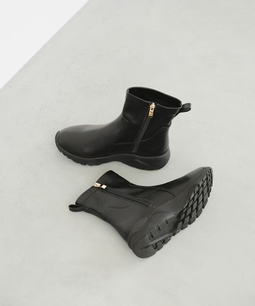 アダストリアが展開する日本発のライフスタイルカジュアルブランド・グローバルワークの「エアかる撥水スニーカーブーツ/579486」は、毎年人気のスニーカーブーツ。まるで“空気のように軽い”「エアかる」シリーズのアイテムとなっています。撥水機能を備えているため雨の日でも安心して履けるほか、抗菌防臭機能付きなのもうれしいポイントです。厚底ながら驚くほど軽く、スニーカーソール仕様で歩きやすさも抜群。カップインソール入りでふかふかとした快適な履き心地が続きます。ストレッチ素材を採用しているため足当たりが柔らかく、長時間の外出でも安心。シンプルなデザインでどんなコーディネートにも合わせやすい万能ブーツです。
