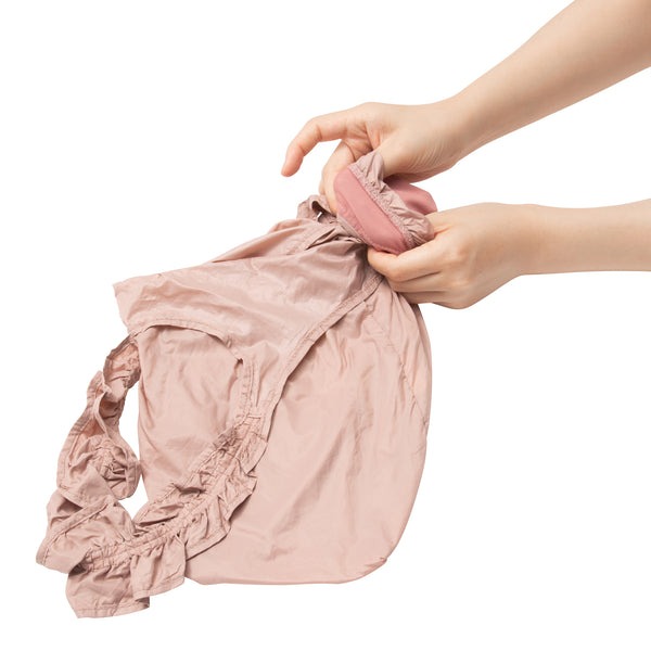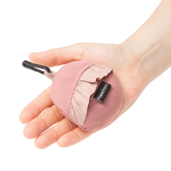 フランフランの「くしゅらくエコバッグ フリル」(税込1500円)は、コンパクトさとかわいさ、そして使いやすさを兼ね備えたエコバッグです。くしゅくしゅっと押し込むだけで丸められる簡単収納仕様で、エコバッグにありがちな「たたむのが面倒」を解決。最大の特徴は、手のひらサイズになる高い携帯性。付属のカラビナで普段使っているバッグにさっと取り付けることができるため、邪魔にならず常備できます。