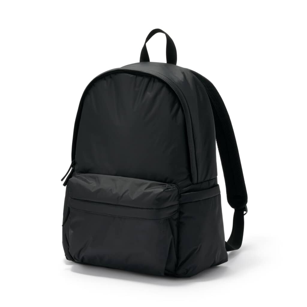 無印良品の「肩の負担を軽くする 撥水中わた入りリュックサック」は、無印良品の特許技術を採用したオリジナルの肩紐が、重い荷物を背負った際の肩への負担を軽減してくれるリュック。肩紐全体に荷重が分散される設計により、肩への食い込みや痛みを抑え、快適に持ち運びできます。PC収納ポケットや6つの便利なポケット付きで、収納力も抜群。キャリーバーに取り付けられるベルトも備え、出張や旅行にも便利です。生地には再生素材を使用しており、一部にはっ水加工を施しているのもポイント。カラーは黒とキャメルの2種類、価格は税込み5990円で販売されています。