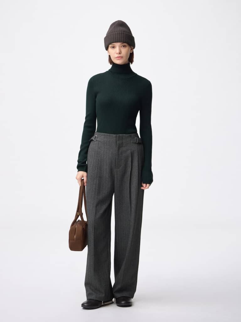 GUの「ヘリンボーンハイウエストパンツ」もおすすめ