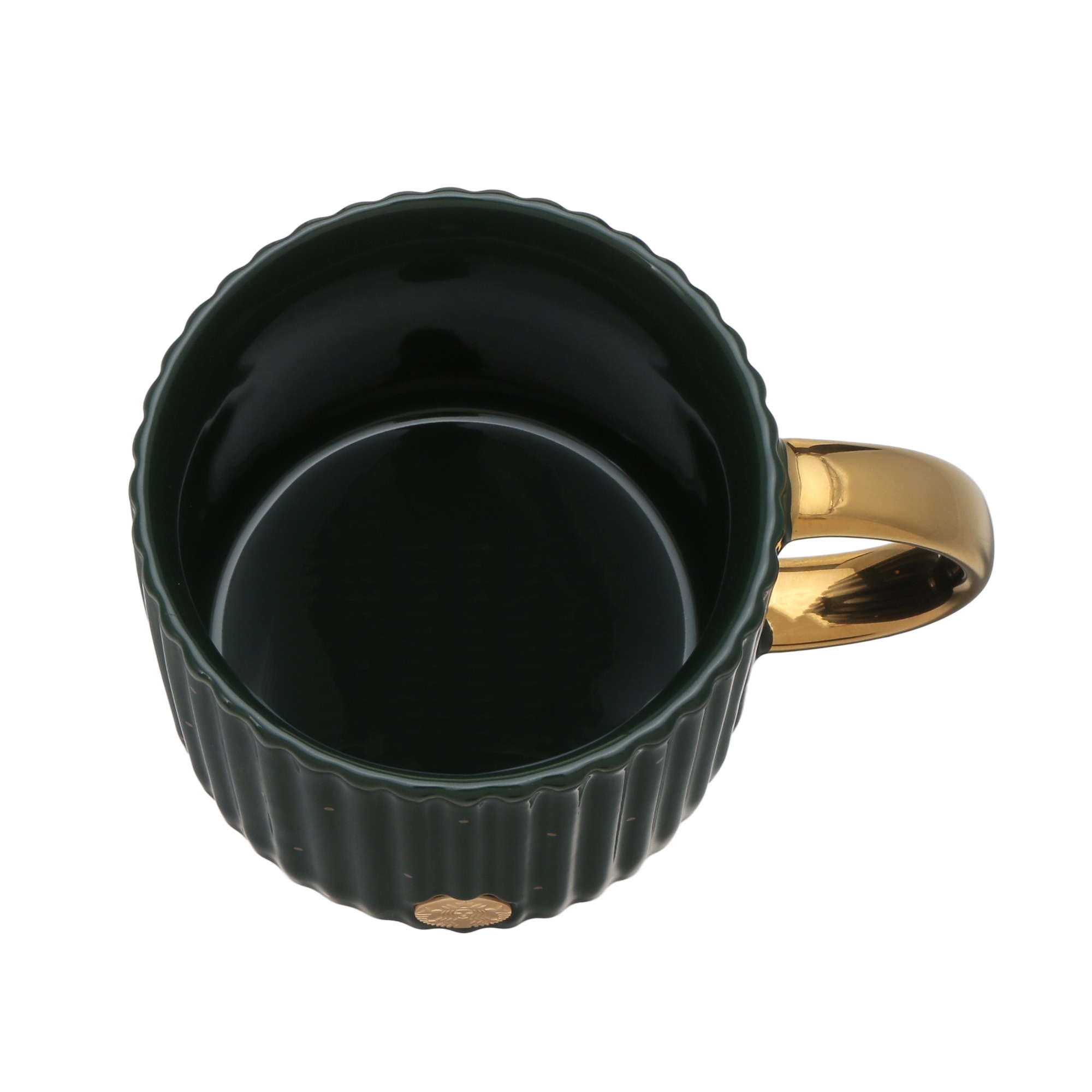 実際に購入した人からは、「ネットで見て一目惚れし、店舗で実物を見てやっぱり素敵で即買いしました。深みのあるグリーンにゴールドの持ち手とドット柄がとっても可愛いです。中もグリーンなので、コーヒーの汚れが目立ちにくいところもいいなぁと思います」「モスグリーン×ゴールドとシックで大人かわいくて……。ただマグが重たいのがひっかかりましたが、可愛かったのでお迎えしました。 たくさん使わせていただきます!」「すごくシックでかわいいデザインで、使ってて気分も上がります」といった声が寄せられています。