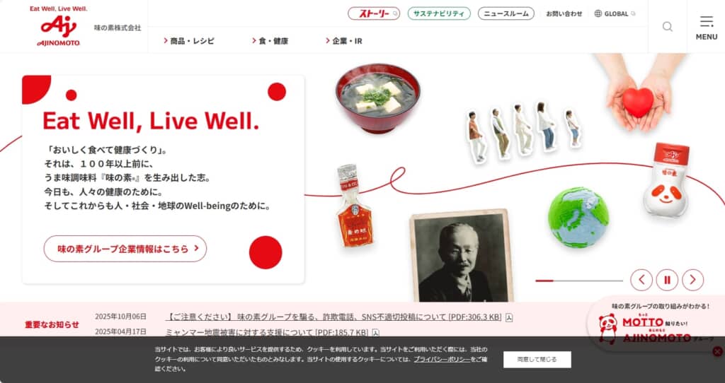 第2位は、「味の素」でした。味の素は、東京都中央区に本社を置く、1909年創業の食品メーカーです。日本および海外において、食品事業だけでなく、ヘルスケアや電子材料など、幅広い事業を展開。今後は「ヘルスケア」「フード&ウェルネス」「ICT」「グリーン」の4つの成長領域で、より大きな社会・経済価値の創出を目指しています。