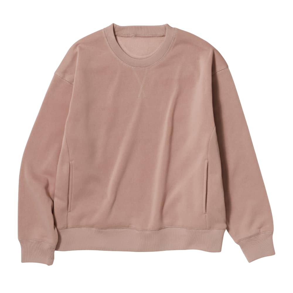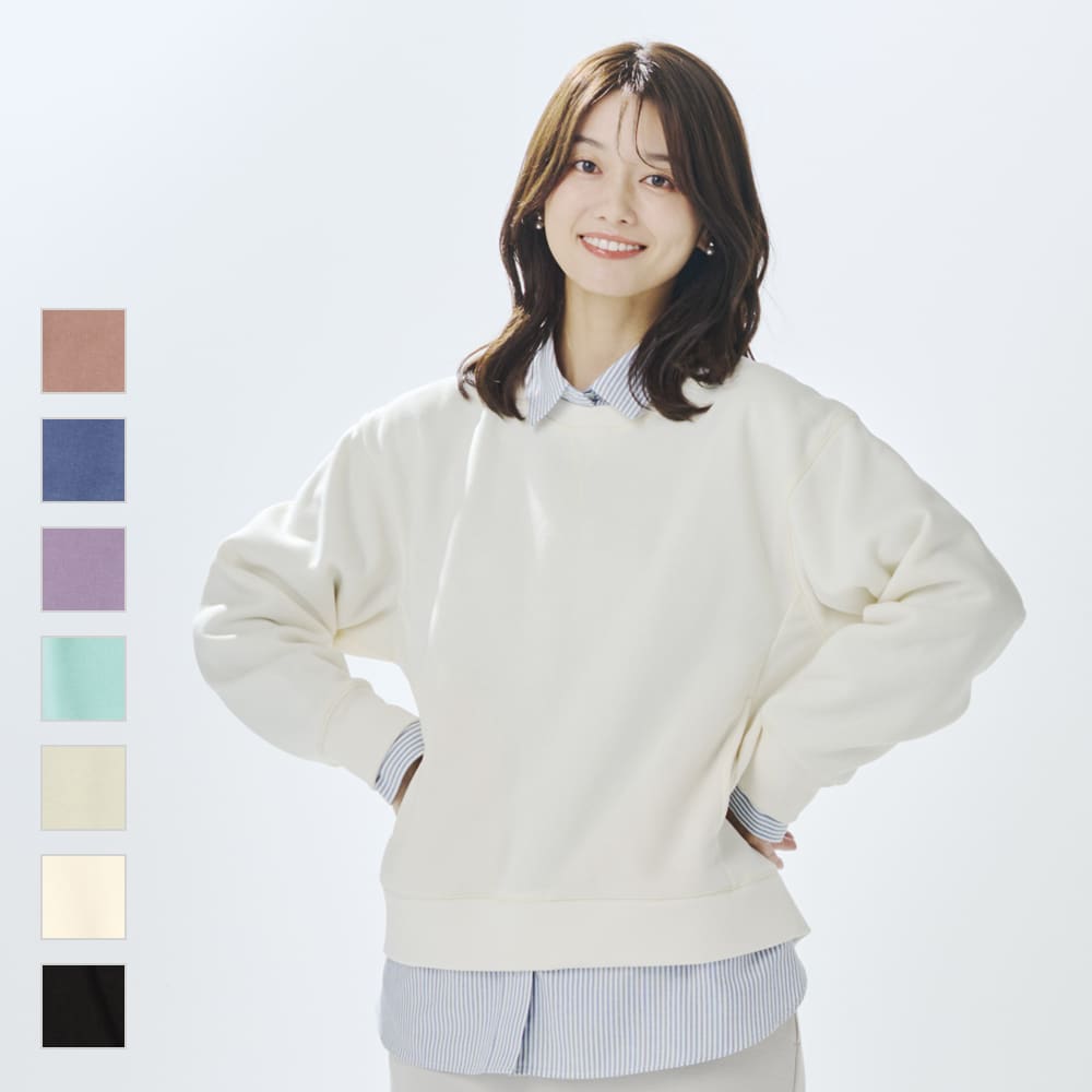無印良品の「婦人 裏毛スウェットシャツ」は、程よい厚みと柔らかな着心地が魅力のスウェットシャツです。素材はオーガニックコットンを含む綿とポリエステルの混紡で、ベーシックな裏毛生地のため、季節を問わず長く着用可能。デザインはゆとりのあるシルエットと長すぎない着丈で、スカートやワイドパンツとの相性も抜群です。やや伸縮性がありゆったりとしたフィット感なので、着心地も快適。カラーは7種類、価格は税込み2990円で販売されています。