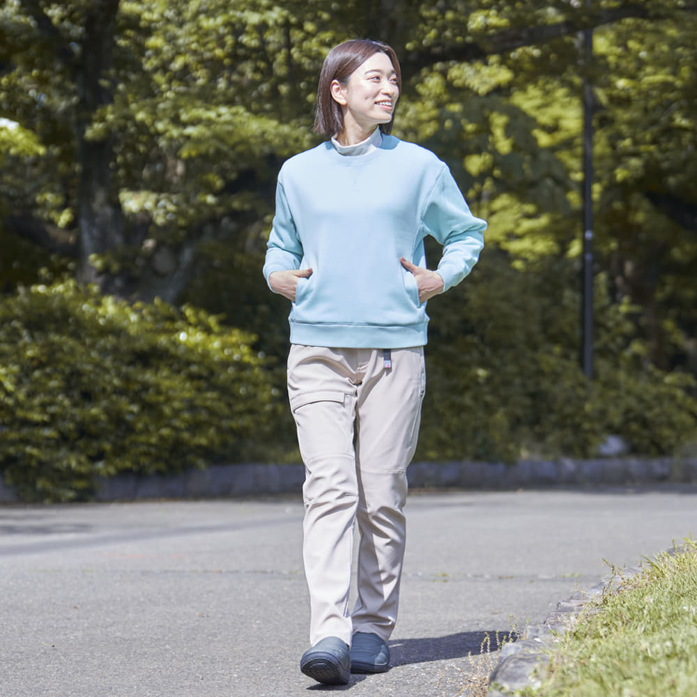 今回はそんなワークマンの「レディースサーバースウェットウォームクルー」(1500円)を見ていきましょう。このスウェットは、女性向けに設計されたクルーネックのプルオーバーで、日常使いから家事、ちょっとしたお出かけまで活躍する秋冬トップスです。コーヒー、酒類、醤油などの親水性の汚れに対応する「防汚機能と高撥水加工」が施されているのがポイント。子どものお世話、外出先でのちょっとしたハプニングにも強く、安心感があります。