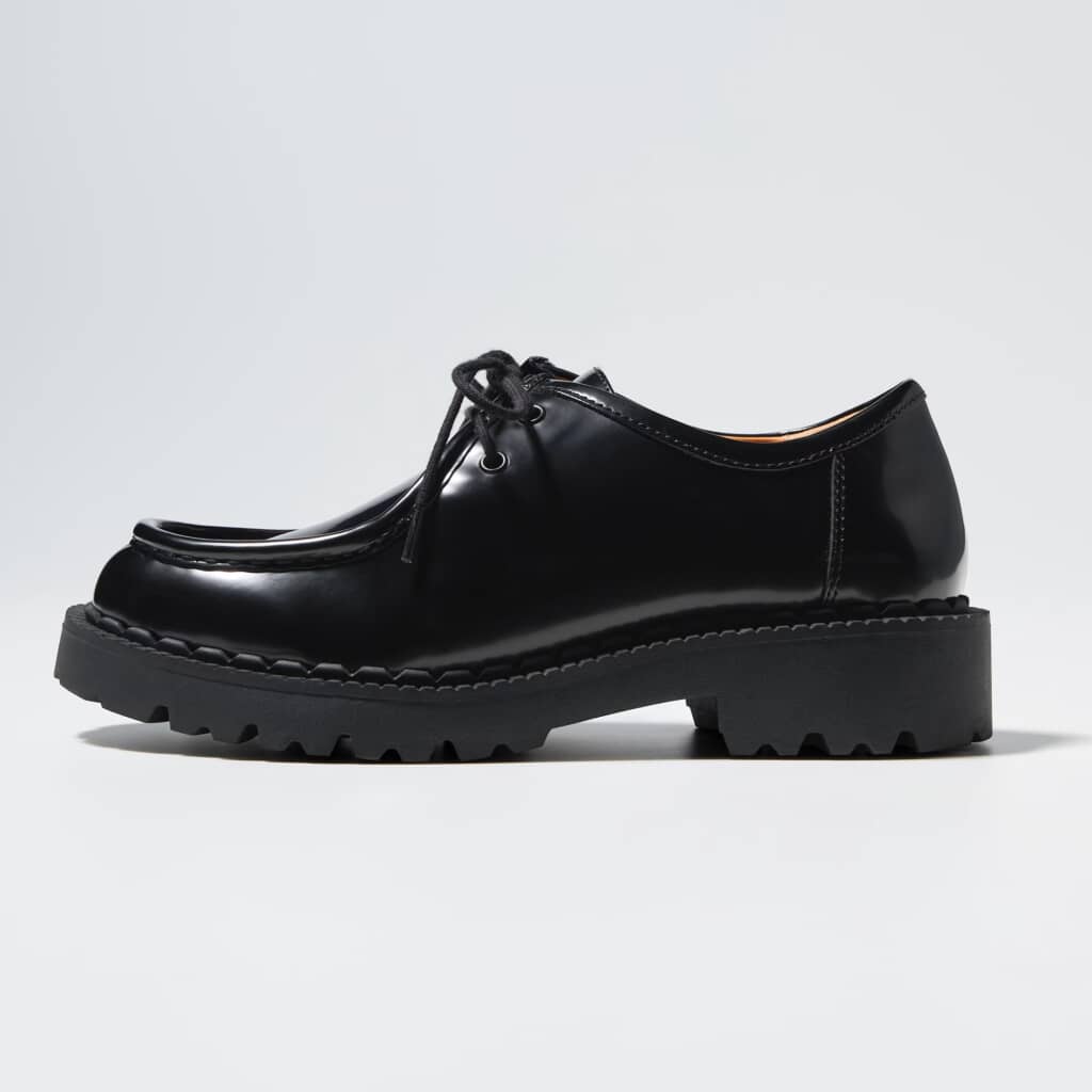 そんなユニクロの「レースアップシューズ」(4990円)は、きれいめにもカジュアルにも使いやすいバランスの取れたシューズ。つや感のある合成皮革素材を採用しており、上品な印象を持たせつつ、汚れがついた際にも比較的手入れしやすいという実用性を兼ね備えています。ソールは厚みとボリューム感をもたせた設計で、特にワイドパンツや太めのボトムスとの相性が良好。サイズ展開は、男女兼用仕様で22.5 cm~28センチをカバーしています。