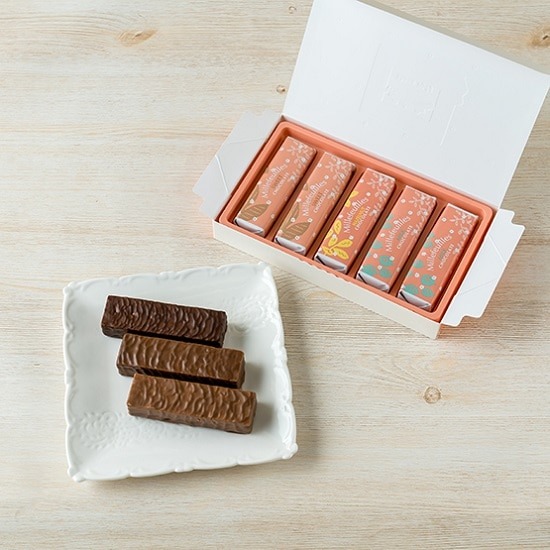 ベルンのロングセラーとして愛され続ける「ベルンのミルフィユ」。その魅力がぎゅっと詰まった「ミルフィユ 5個入」は、手軽に楽しめるサイズ感ながら、本格的な味わいと上品なおいしさがしっかり堪能できる人気のお土産です。香ばしく焼き上げた3層のパイ生地は層がしっかり立っていて、一口かじればほろりと崩れる繊細な食感。バターの風味がふんわり広がりつつ、重たすぎない軽やかな仕上がりがたまらないおいしさです。3種類のクリームと、3種類のオリジナルチョコレートは、一度食べるとまた食べたくなるのだとか。どれを食べるか迷ってしまいそうですね。