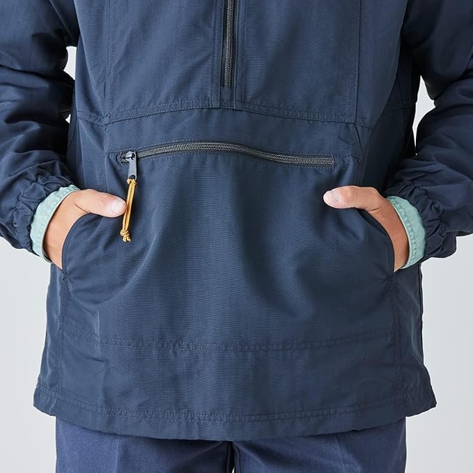 「メンズ マウンテン・クラシック・アノラック」は、アーカイブから復活したヘリテージ顔に、現代の使い勝手を足したプルオーバー型アウターです。生地は耐水性・耐風性に優れたサプレックス・ナイロン100%で、軽くて丈夫、綿のようにソフトな風合いが特徴。長めのフロントジッパーで着脱がしやすく、前のカンガルー・ポケットとジッパー・ポケットに加え、フードと裾のドローコード、袖口のゴムでフィット調整も容易です。