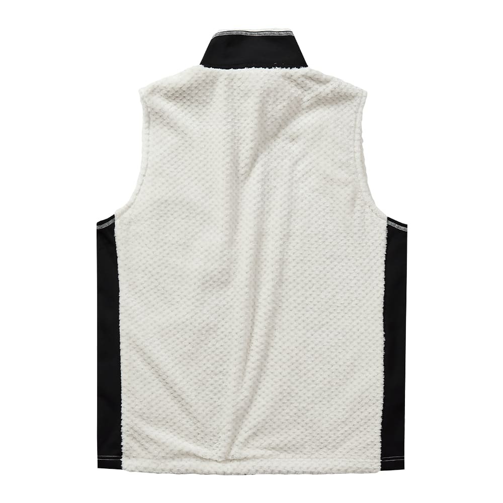 ワークマンの「ダイヤフリース裏アルミベスト」は、ふんわりやわらかなダイヤフリースに、背中側へブラックアルミプリントを配してぬくもりを高めた軽防寒ベストです。脇は動きやすいストレッチニット切り替え、左胸には小物の落下を防ぐファスナーポケットを備え、ミドルインナーとしても単体アウターとしても使いやすい設計になっています。