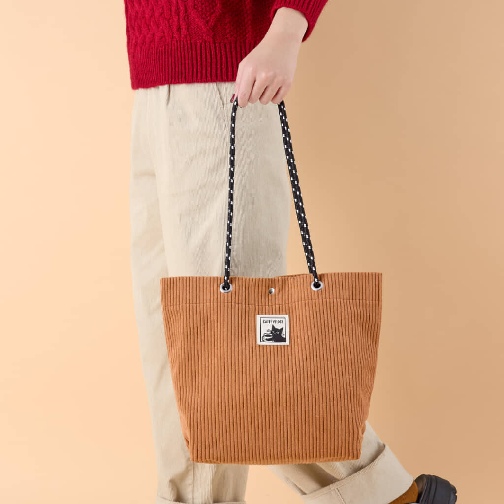 黒ねこコーデュロイバッグ(キャメルブラウン)