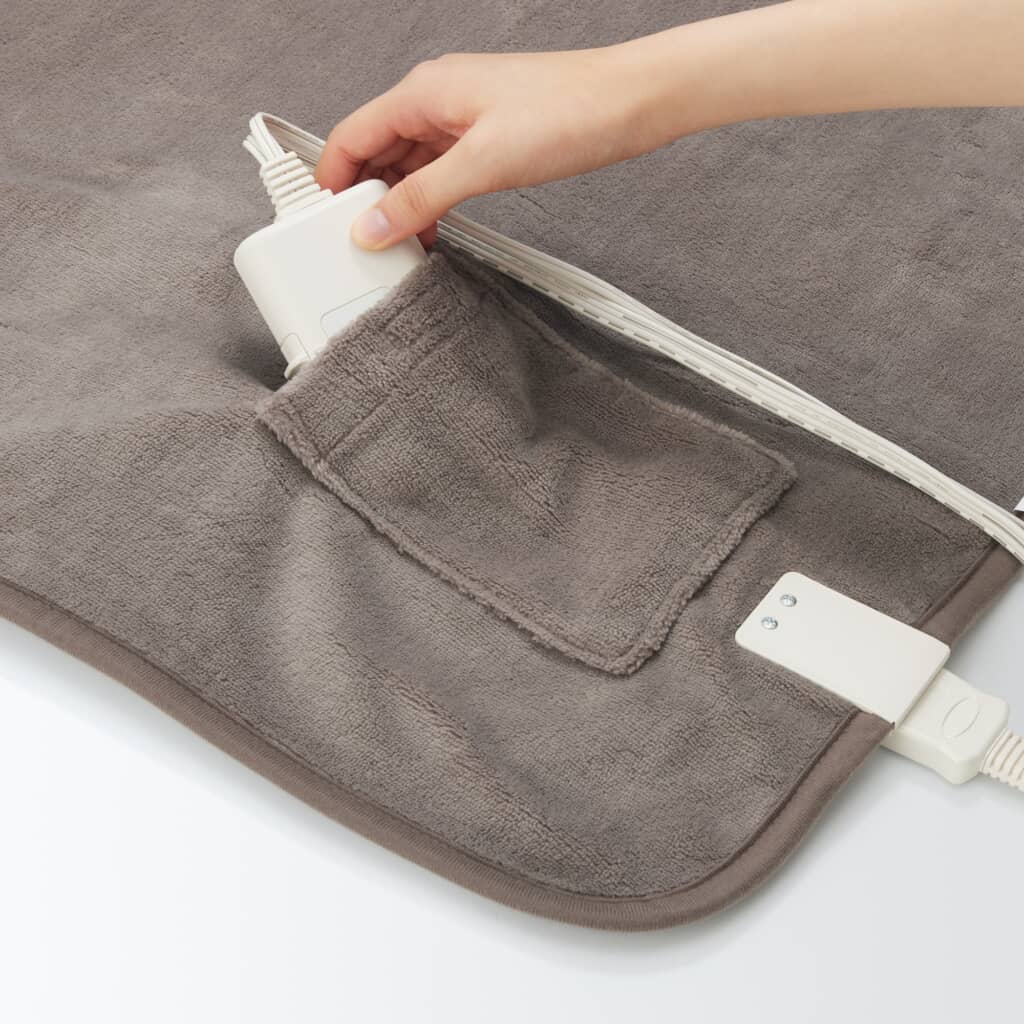 無印良品の「羽織れる電気ブランケット」は、なめらかな手触りと落ち着いた色合いが魅力の電気ブランケット。新モデルでは生地加工を見直し、よりインテリアに馴染みやすくなりました。両サイドにスナップが付いており、羽織ったり腰に巻いたりと使い方は自由自在。ヒーター線が全体に通っているため、体をしっかり温めてくれるのが魅力です。温度は3段階で調節可能で、使わないときはコントローラーを収納できるポケット付き。洗濯機で丸洗いできるので、お手入れも簡単です。カラーは3種類、価格は税込み4990円で販売されています。