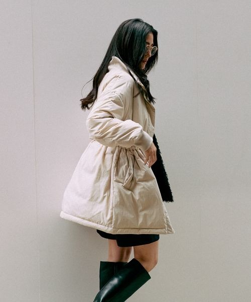 軽量で撥水性があり、手洗い可能など機能面で優れているのも特徴。袖口と襟のリブがワンポイントになったデザインは、リブが風の侵入を防いでくれます。素材感やゴールドパーツなど、細部までこだわりが詰まったアイテムです。カラーは「ブラック」「ライトベージュ」を展開しています。