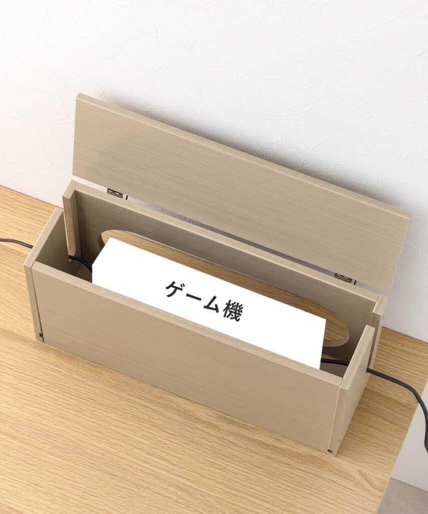 3COINSの「《WEB限定商品》ゲーム機収納ボックススリム」(税込み:2200円)は、ゲーム機を収納できる便利なスリムサイズのフタ付きボックス。インテリアに馴染むシンプルなデザインで、生活感をさりげなく隠せるのが魅力です。側面にはスリットがあり、ケーブルを接続したまま収納できるため、使い勝手も抜群。また、コントローラーやソフトも一緒に収納できるワイドタイプも販売されています。なお組み立て式で、組み立てに必要なプラスドライバーが付属しています。