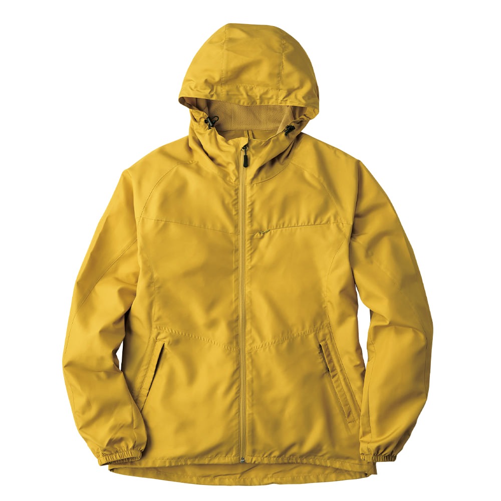 左サイドポケットは本体をそのまま収納できるポケッタブル仕様で、薄手で軽量な生地と相まって、バッグに入れておいてもかさばりません。突然の雨や肌寒さに備えて「常備しておく撥水シェル」としても活躍します。カラーはブラック、ダークグリーン、オレンジ、ライムイエロー、グレーの5色展開、サイズはSから3Lまでをラインアップし、男女問わず合わせやすいシンプルなデザインも魅力です。