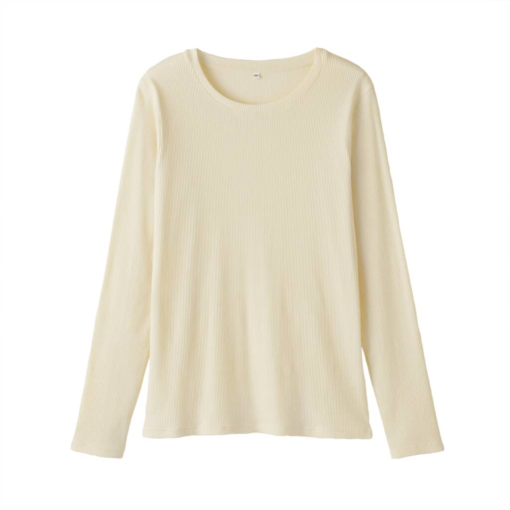 婦人 なめらかリブ編みクルーネック長袖Tシャツ