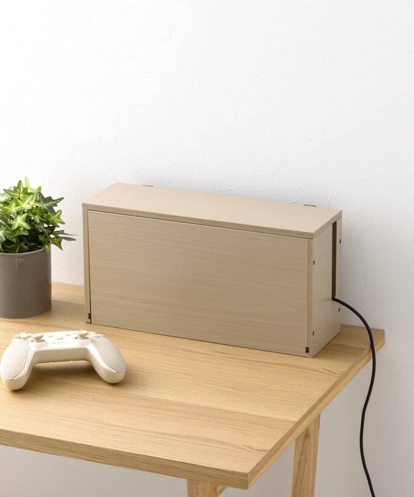 3COINSの「《WEB限定商品》ゲーム機収納ボックススリム」(税込み:2200円)は、ゲーム機を収納できる便利なスリムサイズのフタ付きボックス。インテリアに馴染むシンプルなデザインで、生活感をさりげなく隠せるのが魅力です。側面にはスリットがあり、ケーブルを接続したまま収納できるため、使い勝手も抜群。また、コントローラーやソフトも一緒に収納できるワイドタイプも販売されています。なお組み立て式で、組み立てに必要なプラスドライバーが付属しています。