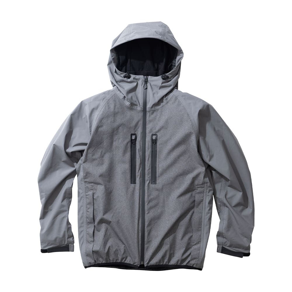 撥水加工が施されており、小雨や霧などの悪天候にも対応可能。さらに防風性にも優れているため、肌寒い季節や標高差のあるアウトドアシーンでも快適に過ごせます。裾にはドローコードが付いており、シルエットの調整も可能。また、付属のスタッフサックにコンパクトに収納できるパッカブル仕様になっています。