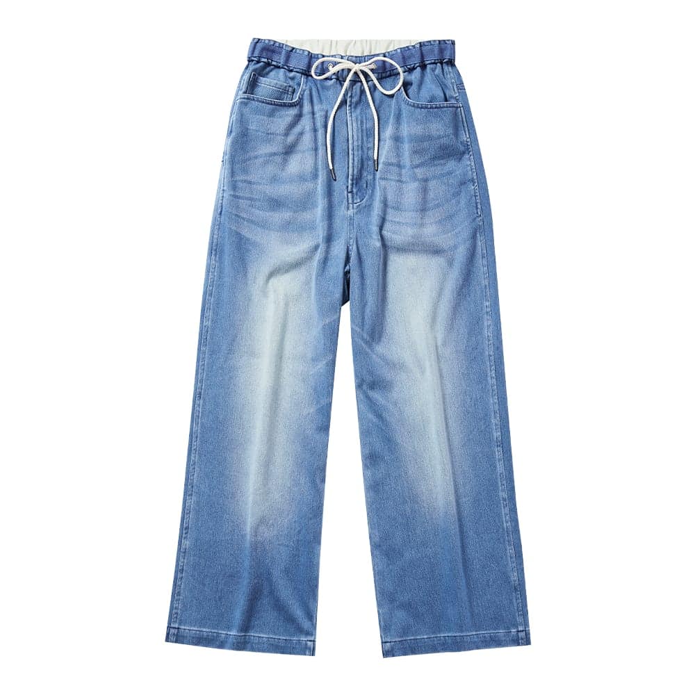 シルエットはトレンド感のあるワイドデザインで、ゆったりしたシルエットがこなれた雰囲気を演出します。前後の両サイドポケットにはコインポケットやファスナーが付属しており、ちょっとそこまでの買い物などに便利です。