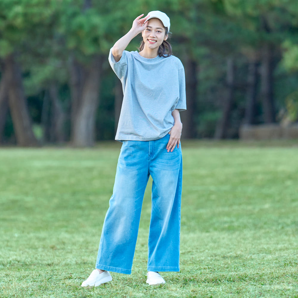 無印良品の「婦人 ムラ糸 チノタックワイドパンツ 股下長め」(3990円)は、オーガニックコットンならではの自然なやわらかさが感じられる一枚です。綿100%の素材を使用し、肌にやさしく快適な着心地を実現しました。ムラ糸を使うことで生地表面に独特の風合いを持たせ、シンプルながらも奥行きのある表情を演出。日常のスタイリングに取り入れやすく、季節を問わず活躍します。