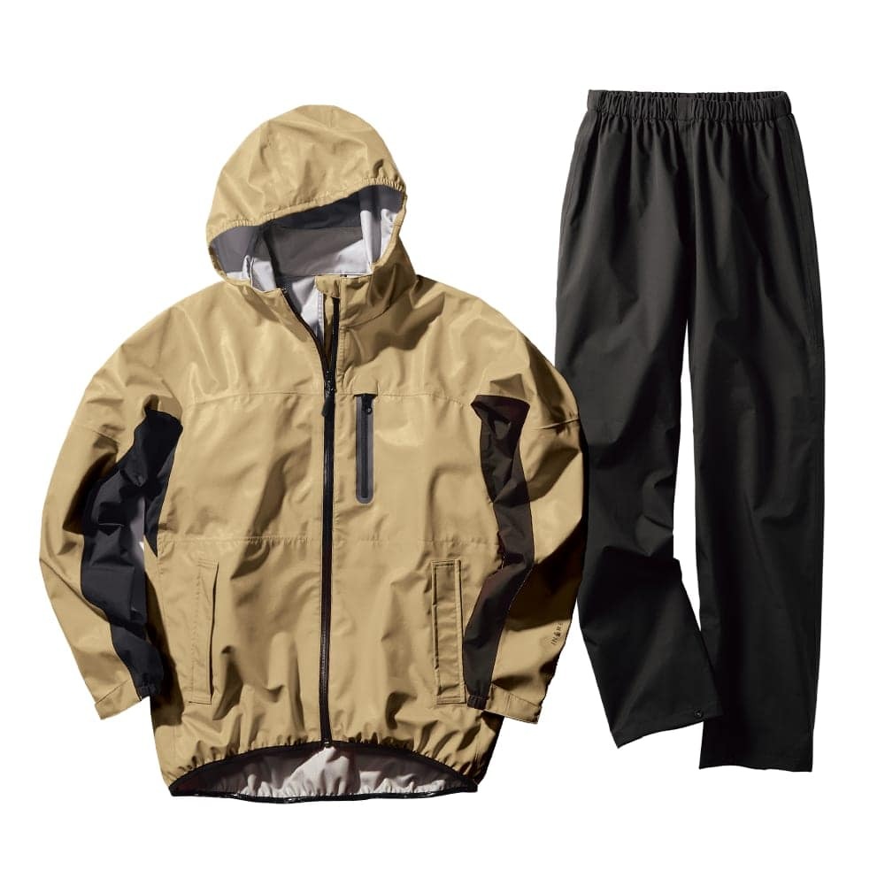 第1位は「イナレム(R)ストレッチレインスーツ」は、防水性と透湿性に優れた高機能アウターセットです。耐水圧20,000mm・透湿度25,000g/m²/24hと、雨の日もムレにくく快適に過ごせるのが魅力。フードは収納可能で、シーンに応じた着こなしが楽しめるのもうれしいポイントです。またストレッチ素材で動きやすく、腕の上げ下げもスムーズ。視認性を高める反射プリントや、信頼のYKKファスナー、収納袋付きで携帯性にも優れています。カラーはブラック・オリーブ・ベージュの3種類、価格は5500円で販売されています。