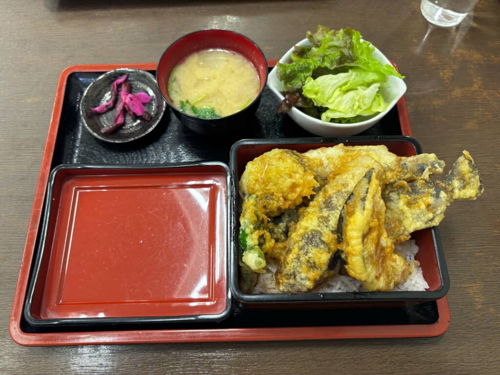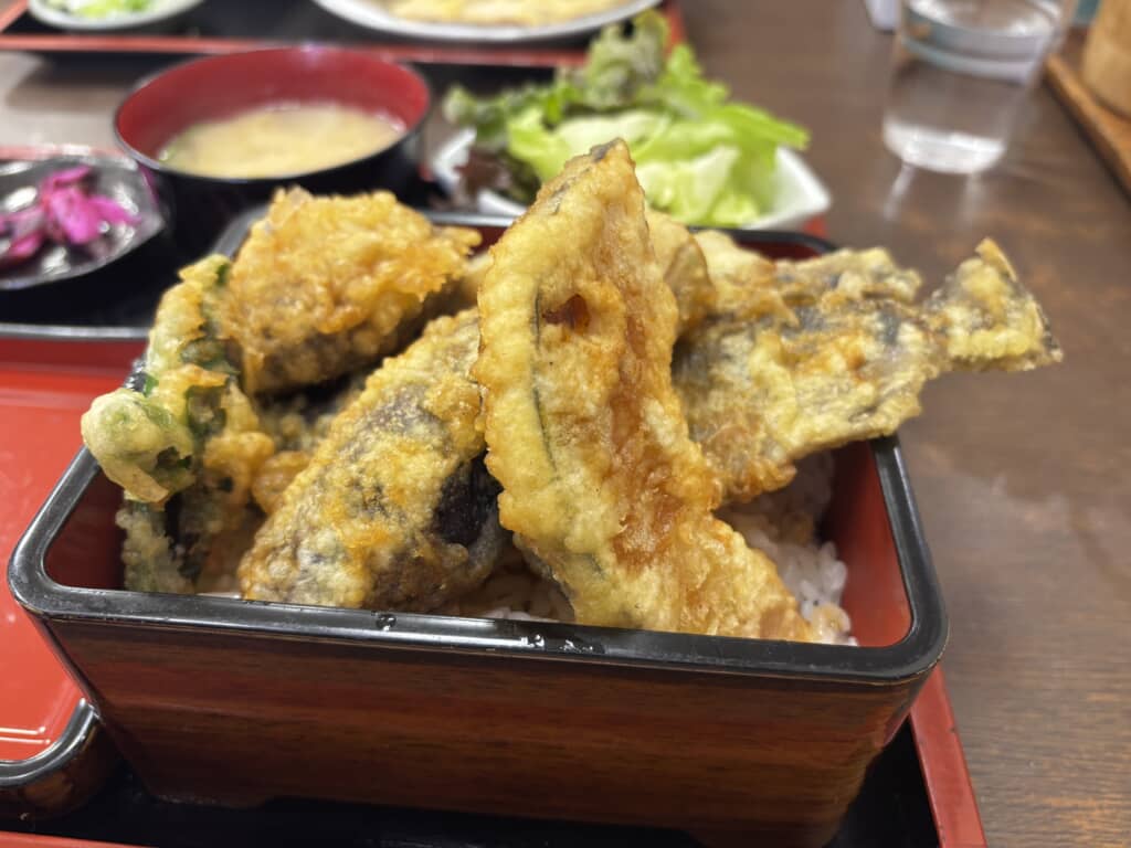 天ぷらは注文されてから揚げるため、揚げたてサクサクの状態で提供されます。少し待つことになりますが、その価値は十分。山北の清流で育った川魚の身はふっくらと柔らかく、頭から尻尾まで丸ごと食べられる絶品です。季節の野菜も地元産のものを使用しており、西丹沢の恵みを存分に味わうことができます。