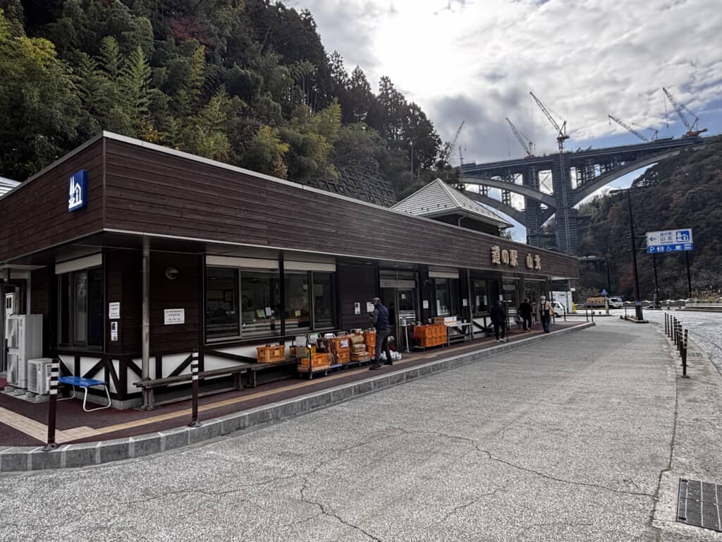 道の駅「山北」は、神奈川県足柄上郡山北町の西丹沢の山並みに囲まれた河内川沿いに位置します。県内では2番目に古くからある道の駅で、2025年4月から工事が行われ、その間は旧清水保育園舎で営業していました。