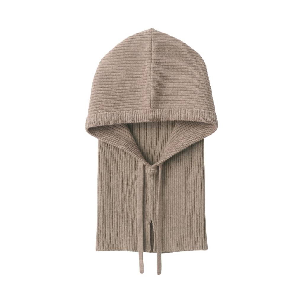 無印良品の「首のチクチクを抑えたメリノウール混 バラクラバ」は、首元の肌あたりに配慮した防寒アイテムです。バラクラバとは、フードとネックウォーマーが一体になったような形状の防寒具で、冷えやすい首元まわりをまとめて覆いやすいのが特徴。