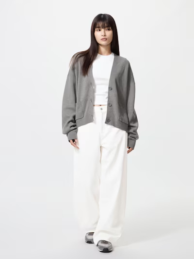ユニクロの「スムースコットンVネックショートカーディガン」(3990円)は、上質なコットン素材を用いた一着。ショート丈のシルエットは、ボトムスとのバランスが取りやすく、ワイドパンツやスカート、デニムなどとの相性が良好。Vネックデザインは首元をすっきりと見せ、インナーとのレイヤードもしやすく、カジュアルからきれいめまでさまざまなコーディネートに対応します。