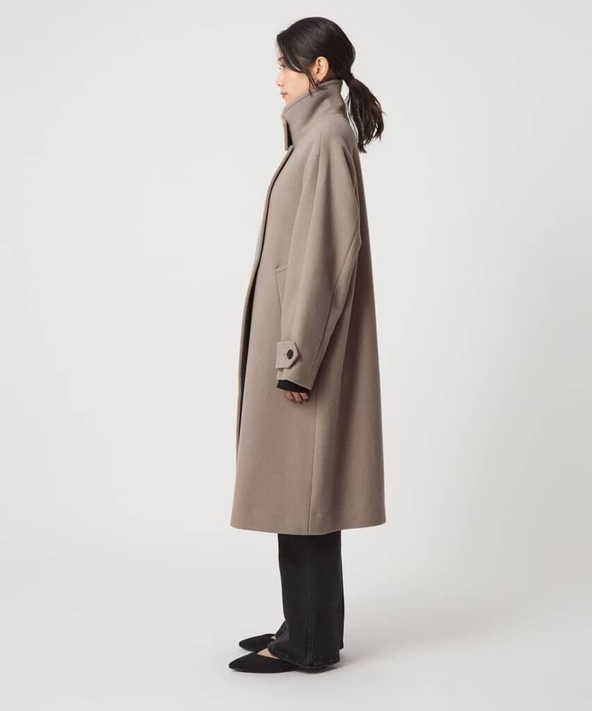 グリーンレーベルの「[size SHORT/TALLあり]SENTDALE WOOL スタンドカラー ロング コート」は、存在感のあるスタンドカラーとロング丈がマニッシュな印象を与え、羽織るだけでコーデが決まるロングコート。ウールとナイロンを使用した<SENTDALE WOOL>のメルトン生地を使用しており、ふくらみ感とソフトな風合いが魅力です。オーストラリア産のSUPER 110ウールを採用し、暖かさと上質さを両立。厚手のニットの上からも快適に着られるゆとりのあるデザインで、袖口の三角ベルトなど細部にもこだわりが光ります。カラーは3種類、価格は税込み3万1900円で販売されています。なお、2025年12月18日時点でオンラインサイトでは在庫切れなため、実店舗をチェックしてみてください。