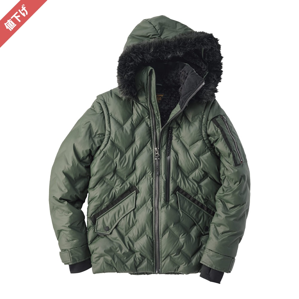ワークマンの「ユーロ アルティメットデュアルフーディー(ブロンズグリーン)」(3300円)は、 防寒性と機能性を備えた、冬の頼れるアウター。防寒性に大きく貢献しているのがシームレス加工で、中わた部分に連続した凸凹パターンを施すことで縫い目をなくし、冷気の侵入をしっかり防止します。表地にはストレッチ性があるため腕を大きく動かすシーンでもストレスがありません。またフロントには「ロングアクティブファスナー」が採用されており、しなやかな開閉がスムーズです。両サイドにはサッと手を入れやすいポケットを、左腕にはファスナー付きポケットを搭載しているため、落としたくない小物の収納にぴったり。内側にもポケットが1つあり、スマホやカードケースなどを入れられる実用性の高いつくりになっています。袖とフードは取り外し可能で、気温やシーンに合わせて使い分けられるのもうれしいポイントです。