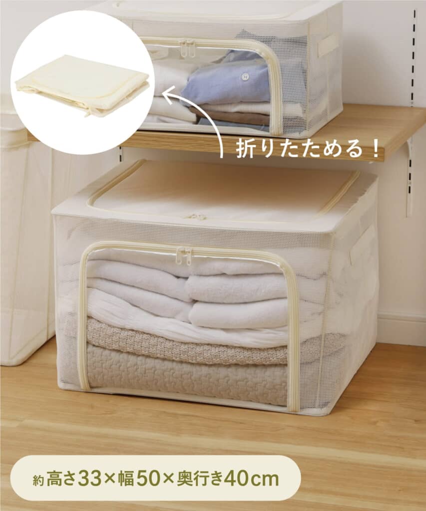 購入者からは、「今まで何十個も購入しています。転勤族で引っ越しが多いため、収納はこちらのクリア収納シリーズがとても便利で重宝しています。洋服、寝具、ぬいぐるみ、バッグ、防災用品など……とりあえず何でも入れてます」「衣類を畳んで入れるのにちょうど良いサイズで、外からも中身が見えるので管理しやすく整理整頓に向いている」「もう何個目かわからないくらい愛用してます。外から見てぱっと何が入ってわかるのが良いですね」「超リピしてます! めちゃくちゃ重宝してます」「クリアな見た目がかわいいです」といった声が寄せられています。