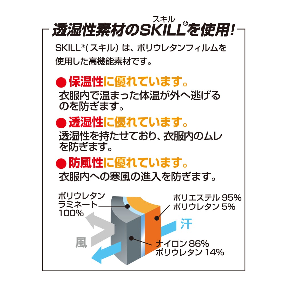 ワークマンの「スキル インナーソックス 先丸タイプ 1足」(980円)は、靴下の上から履くことを想定したインナーソックスです。素材には、防風性・保温性・透湿性をあわせ持つSKILL素材を使用しており、冷たい外気を遮りつつ、内部のムレを抑えやすい設計となっています。