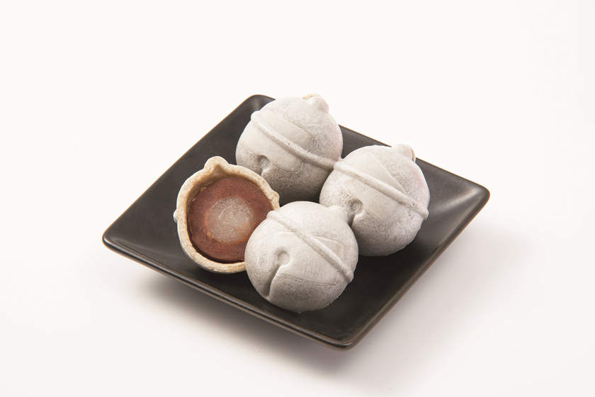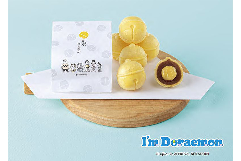 「東京鈴もなか」(香炉庵 KOURO-AN)は東京駅の待ち合わせスポットとして親しまれる「銀の鈴」をモチーフにした最中(もなか)菓子です。鈴型のもなか種の中にはなめらかなこし餡とふくよかな求肥餅がぎっしりと詰められており、絶妙なバランスで調和。ひと口サイズながらも上品な味わいが楽しめます。鈴の形が似ていることに着目したコラボ商品、もなかを鮮やかな黄色にした「ドラえもん東京鈴もなか」も人気です。