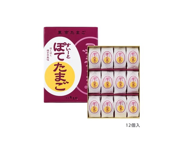 銀座たまやの「東京たまご すいーとぽてたまご」は、東京土産の定番「東京たまご」シリーズのひとつとして販売されているスイーツです。徳島県産さつま芋「鳴門金時」を使い、ほくほくとした芋の風味を引き出したさつま芋あんを、紫いもを使用したホワイトチョコとカステラ生地で包んだ玉子形のお菓子です。見た目のかわいらしさだけでなく、やさしい甘さとコクのある味わいが幅広い世代に親しまれています。東京みやげやギフトとして選ばれている一品です。