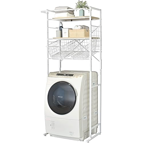- 1位:山善(YAMAZEN) 突っ張り ラック ランドリーラック 洗濯機ラック バスケット付き 床置き 洗濯パン対応 棚板高さ調節 省スペース 幅60×奥行45×高さ200-260cm 棚 収納 洗面所 脱衣所 組立品 ホワイト/マットホワイト RTLR-6040B(WH/MWH)