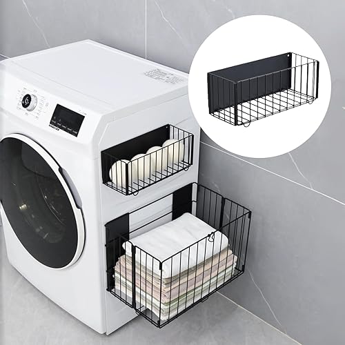 6位:洗濯機横 マグネット式 折りたたみ収納バスケット 簡単設置 耐久性に優れ 清掃も簡単で 防水防カビ 洗濯機 マグネット ラック 洗濯カゴ Sサイズ(28×11×11cm) 耐荷重3kg Lサイズ(42.5×26.1×26.1cm) 耐荷重5kg 浴室とキッチンに適しています (ブラック, S)