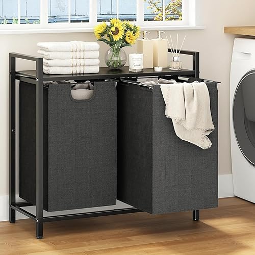 - 2位:ランドリー収納 ラック 幅72×高さ71×奥行32cm 大容量 2段式 スチールフレーム 洗濯カゴ付 取り外しバスケット 洗面所・脱衣所・寝室向け 組立簡単