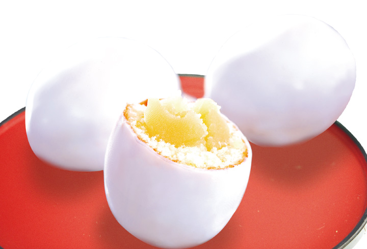 別府のたまごは、大分県産の卵を使った黄身あんを、しっとりとしたカステラ生地で包み、ホワイトチョコでコーティングした商品。別府の温泉卵をイメージしたかわいらしいフォルムも人気を集めたのではないでしょうか。