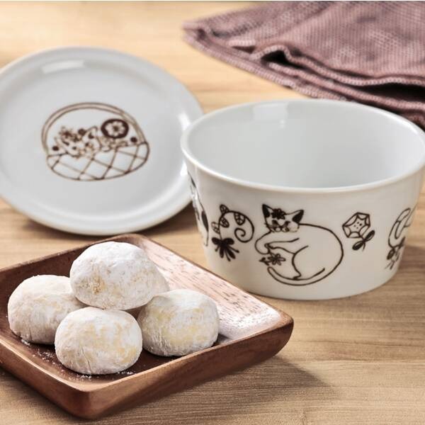 カルディオリジナルの「ネコちゃん柄陶器キャニスター」は、ネコの絵柄が目を引く多治見焼のふた付き陶器キャニスターです。中には新潟県のお米を使用した、やさしい味わいの個包装クッキーが入っており、内容量は5個。食べ終わったあとも使えるのがうれしい数量限定アイテムです。キャニスター自体は密閉容器ではないため、保存の仕方は用途に合わせて選びたいところ。商品サイズは約11.3センチ×11.3センチ×高さ6.0センチで、価格は税込1100円です。