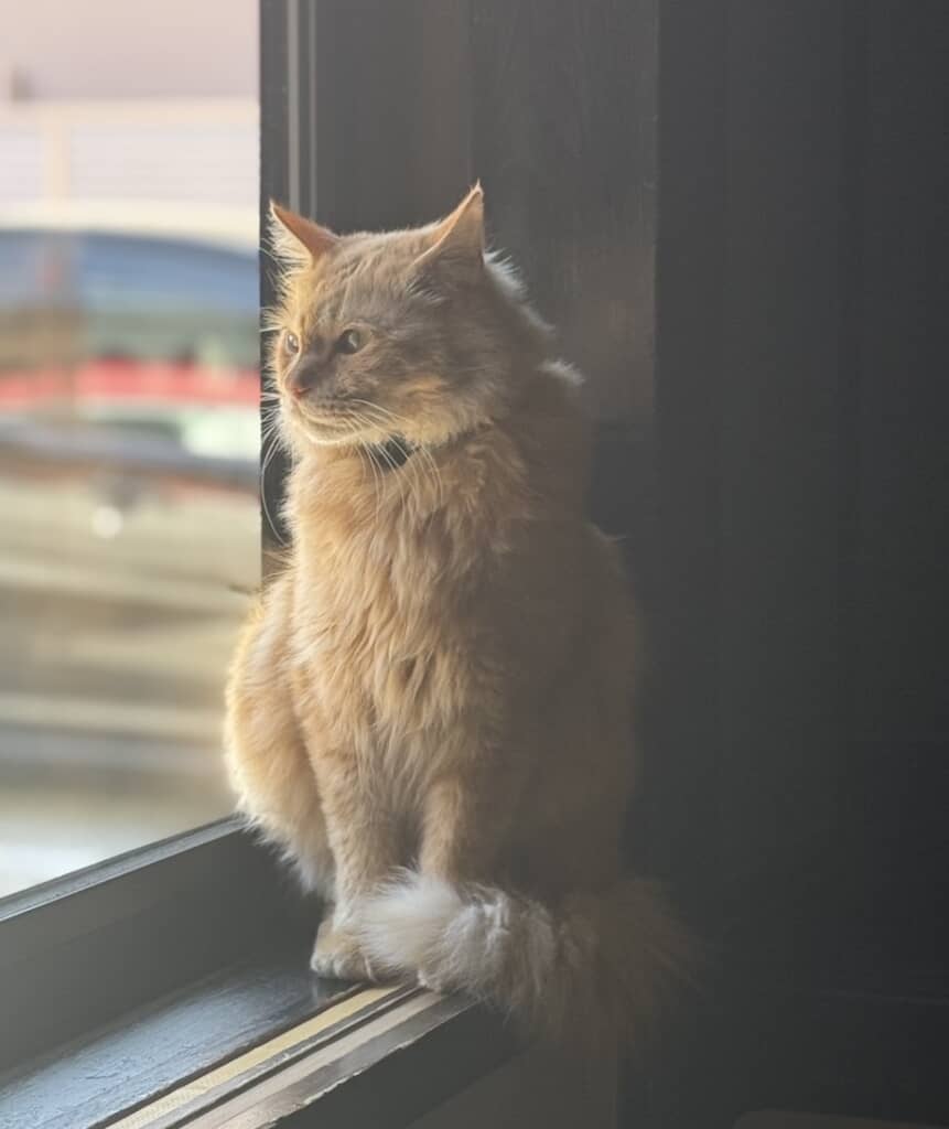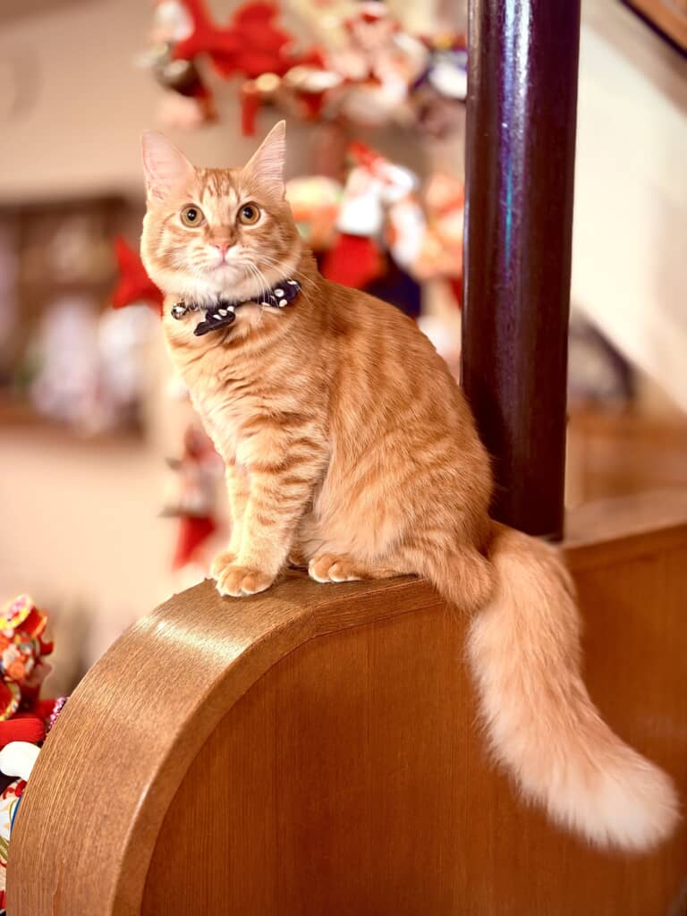 塩原温泉街の中心にあり、1日あたり100トンの豊富な湧出量を誇る自家源泉が堪能できる山口屋旅館。日常から離れ、のんびりとくつろいだ時間を過ごせます。2025年にやってきたというみみたんは、ふわふわの長毛ともふもふの尻尾が自慢のチャトラ柄猫。公式Xでは、他の看板猫たちと元気いっぱいに走り回る姿が見られます。おてんばな一面がありつつ、姉妹猫のキナコと寄り添って眠る姿を見せることもあり、そのかわいらしさに魅了される宿泊客が続出しているようです。