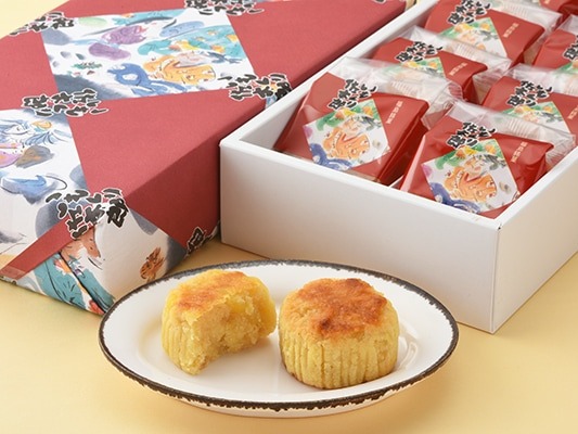 熟練の職人による絶妙な焼き加減が、こんがりと美しい焼き色を生み出し、「いもくり佐太郎」のやさしい甘さをいっそう引き立てています。中はしっとりとなめらかな生地に仕上げられており、口あたりはまろやか。最大のポイントである「栗」がほどよい食感のアクセントとなり、奥行きのある甘さを楽しめます。
