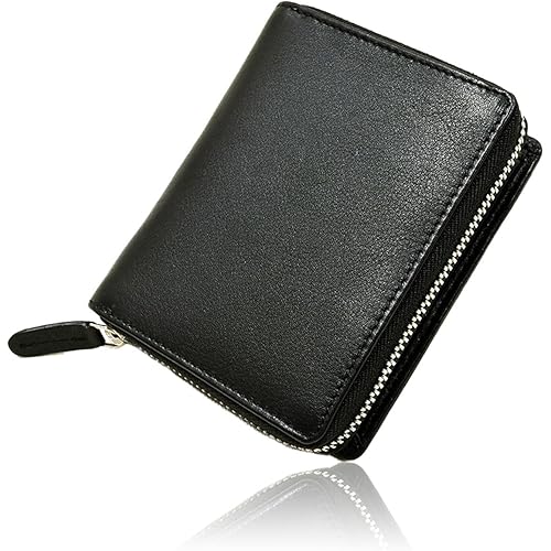 - 20位:メンズ二つ折り財布, 本革牛革製, 大容量マルチポケット, 軽量札入れ, ブラック