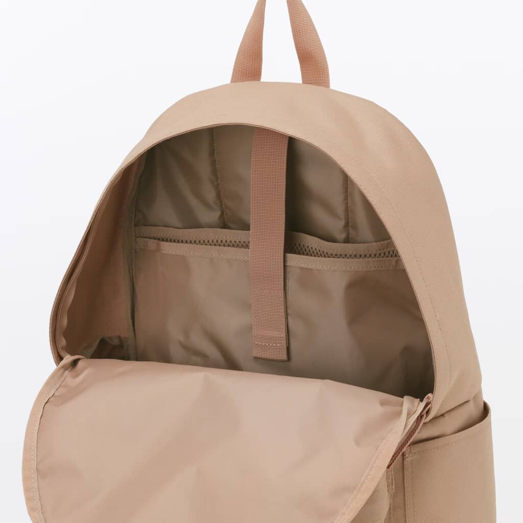 無印良品の「肩の負担を軽くする 撥水リュックサック」(税込3990円)は、特許技術だという無印良品オリジナルの肩ひもが、肩の負担を軽減してくれるアイテム。荷物が重くても、肩にかかる荷重が肩紐幅全体にかかるよう設計されているのだといいます。これにより、肩紐が肩に食い込んで痛くなったり、荷物の重さ以上の重みを感じたりすることが軽減されるのだとか。生地には撥水加工が施されているのもうれしいポイントです。