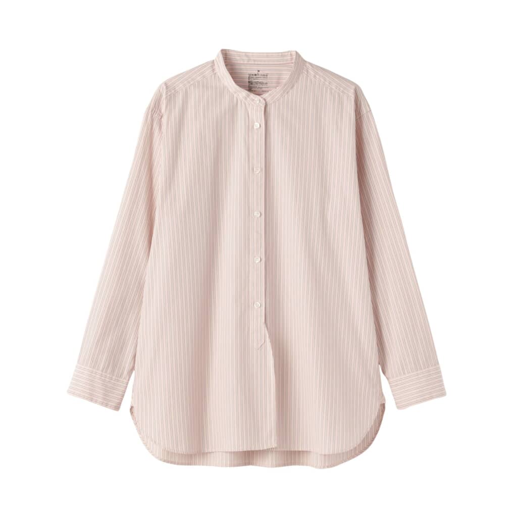 第4位:婦人 洗いざらし ブロードスタンドカラー長袖ロングシャツ