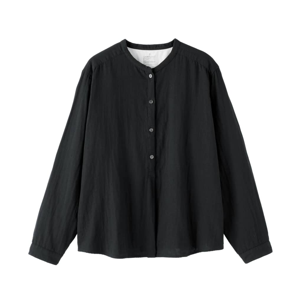 購入した人からは「さらっとしていていい。素材はもちろん、落ち着いた色で気に入っています。顔が明るく見えます」「1枚で着用するときは、すっきりとしたデザインで。重ね着の時には前後逆に着るとヨーク下のギャザーとスタンドカラーが上品な印象です」といった声が寄せられていました。
