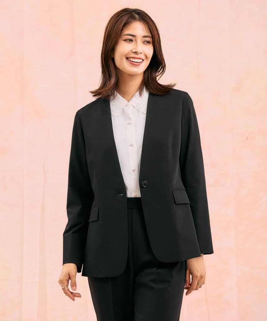 12位:[RIRIYĀNOリリヤーノ] ノーカラージャケット レディース スーツ ウォッシャブル S M L LL 3L 4L 5L ブラック ネイビー 2502-522018