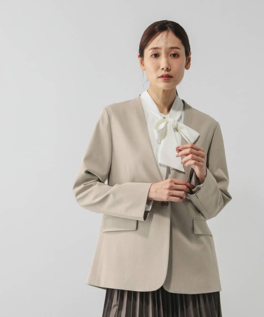 本記事では「ウツクシルエットノーカラージャケット/581021」を紹介していきます。